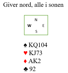 Dagens spill er fra en lagturnering på søndag. For å komme i riktig kontrakt må N/S ha bra avtaler. Hvis ikke kan de ende i en kontrakt som forutsetter flaks, men har visse sjanser. Selv om flaksen er på N/S sin side i første omgang er det litt mer å tenke på. Ta først meldeprøven syd fikk.