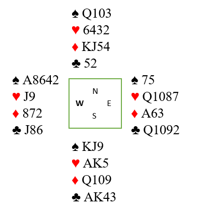I spar vil spillefører få to stikk etter hvert. I den fargen er det en sånn tett og god kombinasjon hvor det kan se ut som det har ingen betydning hvilke kort du legger først og sist. Det kan imididlertid ha veldig stor betydning, og i dette spillet kan du ha spilt bort kontrakten om du var for rask på labben i første stikk.