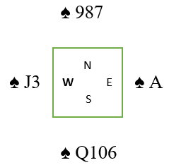 Vest som er den eneste som har igjen kløver spiller altså en fjerde runde kløver, og øst trumfer med esset! Spillefører kan bare sitte å se på. Da blir vest sittende med J-3 bak syds Q-10 i trumf, og vest har plutselig sikkert trumfstikk, forsvarets fjerde stikk.