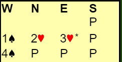 Helness åpnet ikke, greit nok. De endte til slutt i 4 kløver med ti stikk, +130.
