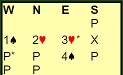 Selv om de får ett stikk i hjerter må kløverfinessen gå for at 3NT skal kunne stå slik kortene var (kongen må sitte hos nord). Altså er utgang usikkert, men ok. Med andre ord kan ikke pass kritiseres pga. utfallet på spillet, at 3NT tilfeldigvis fyker hjem i praksis.