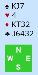 Hvis det kommer spar ut bør N/S også bete 4 hjerter. Syd vinner med esset og spiller sin single kløver. Så må syd hoppe på med trumfhonnøren sin for å få beholde den lillte trumfen idet han kommer inn. Nord har fortsatt spar konge som er inntaket han behøver for å kome inn for å syd en kløverstjeling.