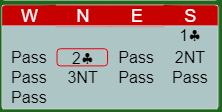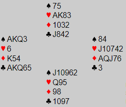 Kun noen få par i de fire puljene spilte 5 kløver, og de gikk bet. Omtrent to tredeler av N/S-parene vant 3NT spilt av syd. Kun ved noen få bord ble det bet i 3NT.
