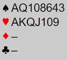 Sist weekend, fredagg kveld 29/10- søndagg formiddag 31/10 ble halve turneringene spilt. Siste halvdel spilles i fabruar 2022. Arena var Lillehammer. 1. divisjon ble overført på BBO wugraph men det var ikke særlig omfang av kommeentarer. Geir Harnes hadde nok å gjøre med å styre bud- og spillforløpet. Fikk sett litt på tilfeldige spill, kom inn mot sluttten av 1. runde, 2. del der lag Hauge (Rogaland 1) møtte lag Hogstad (Telemark 1). Førstnevnte ledet 23-11 imp ved haltid emn ble tatt igjen og tapte 399-42 om ga 10,99-9,01 vinnerpoeng til Telemarkingene. Nest siste spill gjorde utslaget. Syd og alle. Syd ble normalt spillefører i 3 NT. Hva bør Vest spille ut synes du?