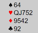 På fire runder kløver og fire runder ruter må han finne to avkast. Hvis han kaster to hjerter har han kun en hjerter-stopper. Da blir det enkelt, spillefører gir simpelthen bort ett stikk i den fargen og får senere tre hjerterstikk.