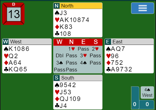Polakken løftet til 4 spar, en tøff melding for å prøve en utgang på 4-3 tilpasning. Og vest hadde de riktige kortene: