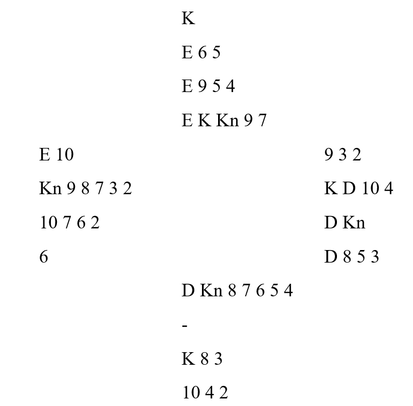 Der Sofie Græsholt Sjødal satt nord og åpnet med 1NT kom den sjeldne innmeldingen 3NT fra øst! Syd, Sofies mor Elisabeth sa 4 hjerter. Nå visste ikke Sofie sikkert om det viste hjerter eller om det var overføring til spar. Men hun passet, og tenkte at hvis det går pass rundt og syd har spar så kan det kanskje være en bra stamp uansett hvor mange udoblede bet syd går. Og om de dobler kan syd ta ut hvis hun mente 4 hjerter som overføring til spar.