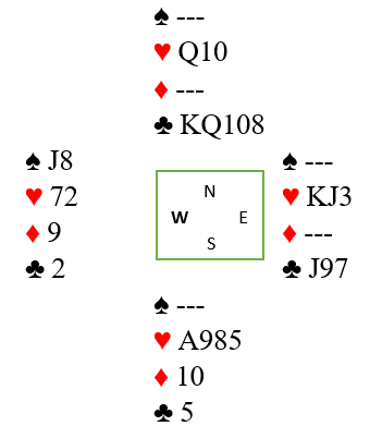 Trumftieren tar ut vests siste trumf. I det stikket må spillefører velge idet det kastes fra nord, går kløveren eller ikke?