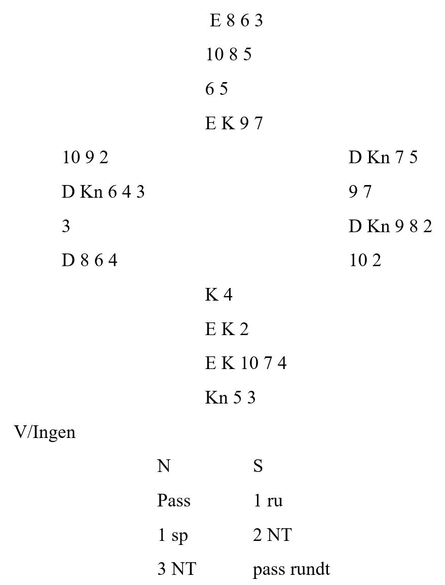 Mot denne 3 NT kontrakten var det om å gjøre å holde på rett farge:
