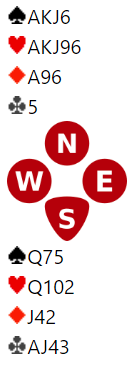 For idet han stjal kløver for andre gang kunne vest kastet spar og spolert det fine spillet som nå kom, men antagelig burde ha skjedd allerede. Det er ikke så lett for vest å kaste spar, for husk nord har vist fire spar i meldingene. Vest kastet ruter som ser naturlig ut å gjøre, og siden kløverstjelingene ikke førte til noe ekstra for spillefører gikk Shenkin over på den planen som måtte til for å vinne 6 hjerter.