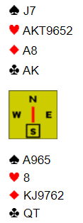Onsdagens RealBridge med BK Missklikk ble med Jan P. «Hvalern» Johannesen som makker. Følgende spill satte press på oss!.Som giver åpnet jeg med 1 NT i Øst. Vi var i ugunstig sone og Jan P svartye 3 NT direkte, 10+ uten majorfarge skal det bety. Etter lang betenkning kom så budet 4 hjerter fra Nord. Hva skal jeg gjøre? Ta først en titt på Nord son hånd. Ille du meldt på den? Se så på Jan P (V) sin hånd. Jeg valgte å doble 4 hjerter in tilfelle vi selv ikke skal videre. Uten den doblingen – hva bør Vest melde?