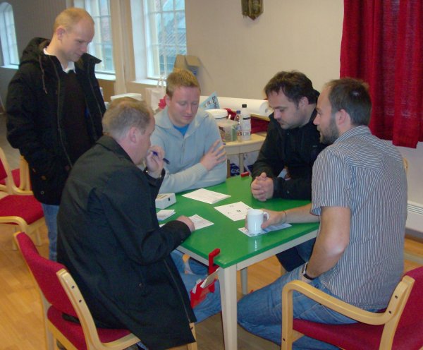 Boye Brogeland og Espen Lindqvist spiller på Nord-Trøndelag i 1. divisjon. I helga ble første helg av seriemesterskapet avviklet i Trondheim og våre gutter gjør det godt. I 1. divisjon ligger Nord-Trøndelag på andre plass etter god spilling. De ledet etter 4 kamper men ligger under etter halvspilt kamp mot Hordaland, så med litt drag her i de siste 16 spill tenker jeg vi er i tet igjen. Laget består av Ragnar Davidsen, Frode C. Nybo, Per Arne Flått, Jørn Arild Ringseth, Boye Brogeland og Espen Lindqvist. Vi ønsker lykke til i februar og lagkaptein Ragnar Davidsen oppsummerer helga her Ove Reidar hadde god makker i Trondheim. I 2. divisjon ligger Nord-Trøndelag 2 på en flott fjerdeplass etter første helg. Laget er debutanter på dette nivået og består av Arnstein Nymoen, Thomas Herstad, Alexander Flakstad, Ove Reidar Holmen, Tormod Daling og Stig Roar Hakkebo. Etter stortap i den første kampen på fredag ble det fem strake seirer. Målet er å berge i divisjonen og vi er på god vei etter den første helga. Fornøyde gutter på Nord-Trøndelag 2 Resultater 1.div. Resutater 2.div.avd.B