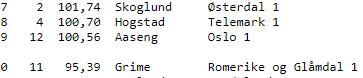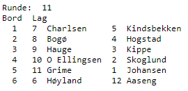 Med fire-fem spill igjen leder CHARLSEN med 16-2. Både KIPPE (mot Hauge) og JOHANSEN (mot Grime) har fått opp bra ledelse i sine kamper. Alle de tre lagene har gullsjanser om CHARLSEN skulle slakke av. Vi kommer tilbake med halvtidsresultatene om litt.