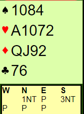 Etter spillet så begge motspillerne på meg med medlidende blikk, som om de syntes synd på meg. Jeg vet ikke, men tipper kanskje samtalen dem imellom da jeg hadde forlatt bordet var noe i retningen: «Stakkars gutt, tenke seg til å spille sin absolutt dårligste farge i grandkontrakt. Nei, han der må være helt nybegynner, eller helt uten talent. Eller mest sannsynlig begge deler».