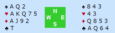 Fra nord kom en trumf i utspill, og Helgemo tok de tre store trumfene. Da oppdaget han at 3 kløveråpneren hadde fire trumf, og derfor sannsynligvis 4-6 i hjerter og kløver, for nord må nesten ha dobbel kløver siden han sa 4 kløver. Det ser mørkt ut, for det er en trumftaper, og med spar konge bak som er veldig sannsynlig er det to spartapere samt en rutertaper, sannsynligvis fire stikk til N/S og i så fall en bet. Har du fantasi nok til å se noen mulighet om det sitter som det sannsyligvis gjør, begge de sorte kongene bak?