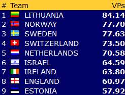 Norge - Kroatia 18,44 - 1,56 (IMP-score: 59 - 16)
