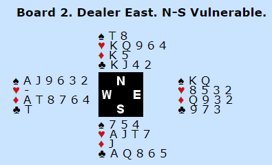 N/S kan vinne ti stikk i hjerter, det tapes kun to stikk i spar og ett i ruter.