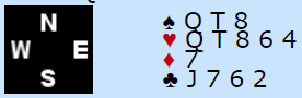 Her er det nok noen som sier at de har ett trumfstikk, så det er ikke noe poeng å spille ut sin singelton. Men er det så sikkert? Syd kan godt ha honnør-knekt fjerede i trumf, og i så fall vil østs trumfbeholdning bli fisket opp. Spillefører, med noe sånt som kongen fjerde i spar hos nord og ess-knekt fjerde hos syd har i så fall ikke mer enn en vei å fiske sparen, gjennom øst siden N/S ikke har tieren. Og hvis det er slik, det mulige trumfstikket kommer til å smuldre bort, kan det godt hende at ruter ut er tingen. Hvis vest har esset blir det i så fall bet på direkten med ett ruterstikk og en stjeling. Men at nord meldte 6 spar på svaret tre nøkkelkort tyder vel på at de har alle essene og trumf konge siden nord ikke spurte etter trumf dame.