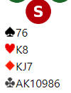 Fra vest kom hjerter knekt i utspill, og hele spillet så slik ut: