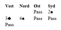Det ender nok i 4 spar nesten over alt i dette spillet om da ikke noen Ø/V-par finner på å stampe i 5 kløver. Det blir i teorien feil i lik sone, for det er fem tapere, altså -500 mot N/S sin utgang utenfor sonen. Pussig nok kan faktisk -500 gi et bra spill til Ø/V i dette tilfellet!