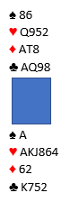 Vi kan sjekke litt mer om fordelingen før kløveren spilles. Det er jo en rutertaper uansett, og kanskje kan ruterspill avsløre noe som gjør at en motspiller peker seg ut som den som kan ha kløverlengde.