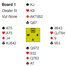 Ved første øyekast - hvis en kun ser på N/S sine kort - ser det ut som om 3NT er avhengig av ruterfinessen, for det er kun åtte toppstikk (0+1+2+5=8).