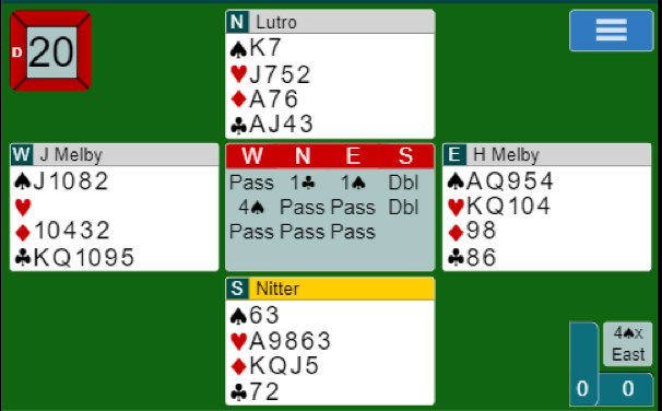 Å spille 4 spar på nord sin hånd ser egentlig bedre ut enn der syd måtte spille 4 spar doblet og vant den.