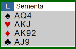 Mot Hoftaniska - Vist som N/S åpnet øst med 1 hjerter. Syd sa 1 spar og vest støttet til 2 hjerter. Nord sa 4 spar nå som vel på en måte er en undermelding (?), men et praktisk valg. Øst gikk på med 5 hjerter og syd sa 5 spar. Nå hadde nord så mye ekstra at det virket litt logisk å legge på til slem. At syd er renons i hjerter så nå ut som temmelig sikkert.