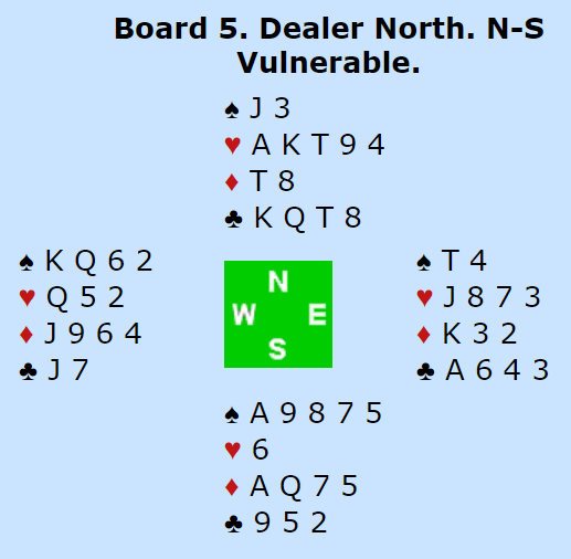 I SCORWAY sin kamp meldte motstanderne 5 kløver og fikk elleve stikk mot Grude-Brekka. Dessverre stoppet lagkameratene deres i 4 kløver, så SCORWAY tapte 10 av de 15 IMP'ene de ligger under med pga. dette spillet.