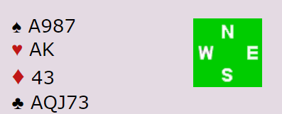 19 hp med to gode minorfarger kunne reverseres, så jeg åpnet med 1 kløver og etter pass fra Mosby svarte Marthinussen 1 hjerter på dette: