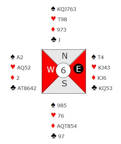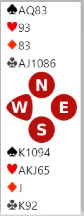 Mot Helgemo-Zia bommet spillefører kløveren i 6 kløver og gikk en bet. Hele spillet så slik ut: