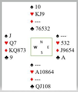 Merk at 7 kløver står da det er avkast for spar på ruterfargen. Merk også at N/S kan vinne tolv stikk i sparkontrakt om det tippes riktig på hvor spar knekt er plassert. I dette spillet står det altså storeslem Ø/V og lilleslem N/S (med heldig sparvalg)!