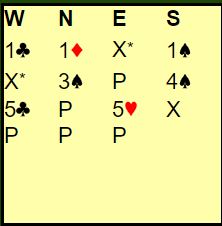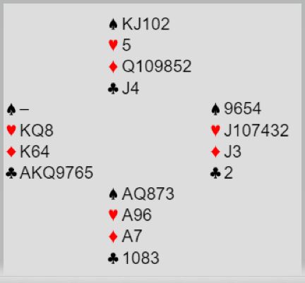 Nord var med på notene, han hadde faktisk tre ess (!). Så de havnet i 6 hjerter etter et br meldingsforløp.