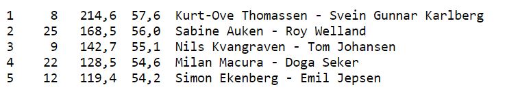 Her er et spill hvor lederparet i A-finalen fikk tak i en nokså uvirkelig score.