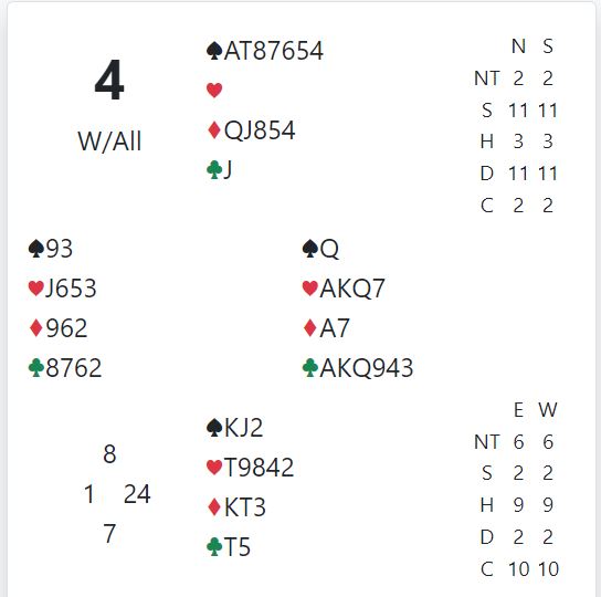 I 5 spar doblet var det bare en taper i ruter og en i kløver, elleve stikk og +850.