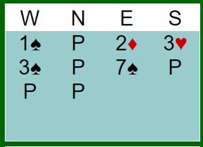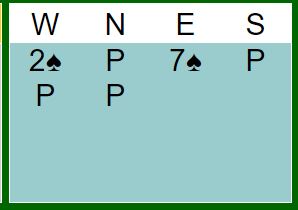 Der ruter dame kom i utspill ble kløver ess spilt med tanke om å prøve den andre sjansen om ikke kongen kom på. Siden kongen falt var det over, tolv stikk, DE BOTTON +1370.Spillet var verd 16 IMP for DE BOTTON.