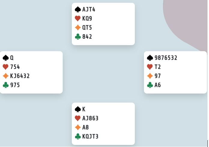 Ved det andre bordet endte det nederlandske N/S-paret i 4 hjerter etter syds åpning 1 hjerter. Spillet ga derfor 13 IMP til NORWEGIANS.