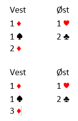 Her kan øst melde 2 kløver som ber om 2 ruter, og så kan han passe hvis det er der han vil spille, eller melde noe som utgangsinvitt. Og 2 ruter brukes som krav til utgang. Den store fordelen er utgangsinvitten, spesielt om svarhånden har femkorts hjerterfarge.