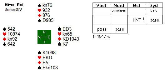 I Monaco-Israel (åpen klasse) fikk vi se at Helness-Helgemo for en gangs skyld feilet ganske grovt, de endte i 6 ruter med to ess borte. Israel fikk tak i essene, tapt spill. Meldingene startet som beskrevet, i andre melderunde sa øst 2 ruter som utgangskrav. Vest sa 3 ruter, og øst hoppet til 4 grand. Det var ikke Blackwood, men generell sleminvitt. Han sier han rett og slett er alt for sterk for 3 grand og tror fortsatt slem kan stå. Vest avsluttet med 6 ruter.