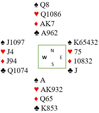 Alt er trist i dette spillet bortsett fra resultatet, +420. Utspillet ved begge bord er dårlig (men alle utspill kan jo være klaff), motspillene veldig svake, og skift til liten hjerter mot slutten er toppen på kransekaka. Øst bør se at han kan bli skviset, og hvis han spiller hjerter bør å spille damen være opplagt. Da holder vest hjerteren, og N/S går fortjent bet i den for hardt meldte utgangen.