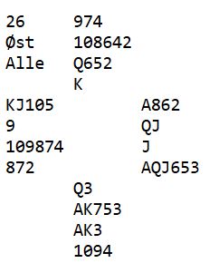 Seks Ø/V-par meldte og vant utgangen 4 spar så i dette spillet ble det meldt og vunnet utgang i begge retninger.