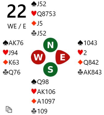 Vinnerparet fikk spille 2 kløver som Ø/V. Det endte med de ni stikkene som kan vinnes. +110 som ga hele 89%. Hvorfor det?