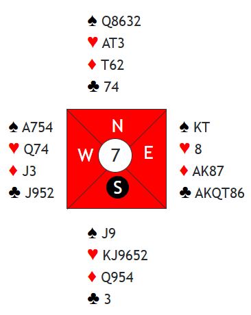 6 kløver er en glimrende slem. Det blir enkelt tolv stikk ved å stjele to rutere hos vest. Ett hjerterstikk er alt N/S får. Ingen par fant fremt til denne slemmen, og det var ikke så lett heller etter at syd ved mange bord åpnet med svake 2 hjerter i første hånd. Godt over halvparten av Ø/V-parene spilte 3 kløver! Det var noen få par i 5 kløver hvor det ble tolv stikk som ga litt over middels. Resten av Ø/V-parene (fire par) spilte 3NT med vest som spillefører. Det endte med ti stikk for to av dem, og de to andre parene delte toppen for elleve stikk og +660.