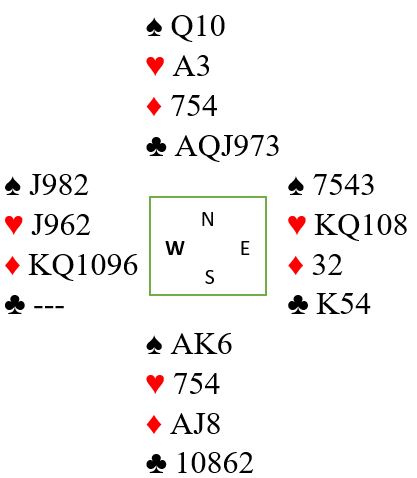 Dermed fikk Ø/V spille 5 hjerter, og da nord prøvde å ta kløverstikk ble det tolv stikk; Rogaland +480, og spillet ga dermed 13 IMP til Midt Trøndelag 1.