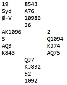 Her er et spill fra en lagkamp. Det så med det samme ut som et særdeles kjedelig spill som normalt ikke gir mer enn maks ett IMP i sving. I sånne tilfeller er det viktig å være på vakt. Kan noe gå galt? Er det noe som kan gjøres om en eller annen sits kan by på problemer?