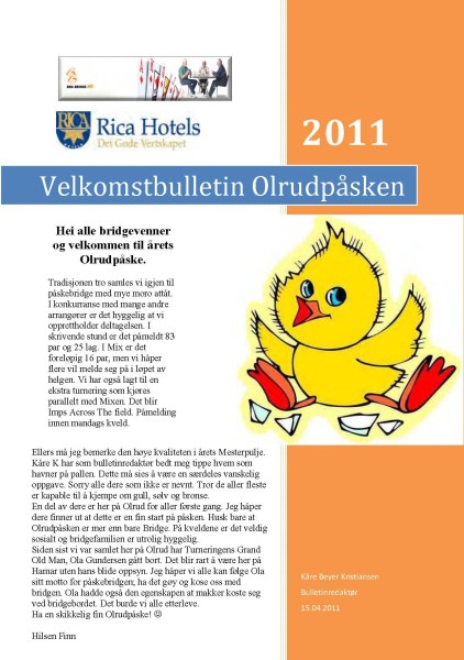 Bergen Akademiske Bridgeklubb (BAK). De møtte Kristiansand Bridgeklubb forrige helg i 5. runde i NM-lag. Sven Olai var kommet i 6 hjerter på hjerterbeholdningen vi ga i oppgave og han løste problemet 100 % etter læreboken. Hjerter konge fra hånden (kan også spille liten fra bordet mot kongen), så inn på bordet og liten hjerter mot J3. Følger begge motstandere på hjerter konge så finnes det ingen muligheter lenger for å nekte Sven Olai 4 hjerterstikk. Pent.