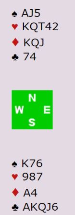 Nord strakk seg til en negativ dobling selv om det var så høyt som over 3 spar, en skummel melding da man "hater" å høre 3NT fra åpneren som jo må melde det selv med helt minimum. Og det skjedde, syd sa 3NT før det gikk pass rundt.