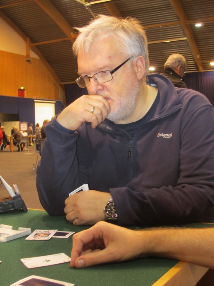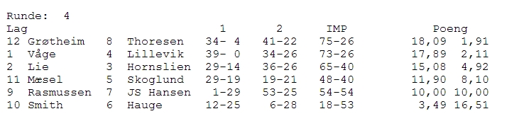 Når Helge hadde vurdert hånda til å være verdt en dobling første gang, fulgte han nå opp med 5sp. "Trumfen min er litt vesen, makker. Kan du hjelpe meg der?"