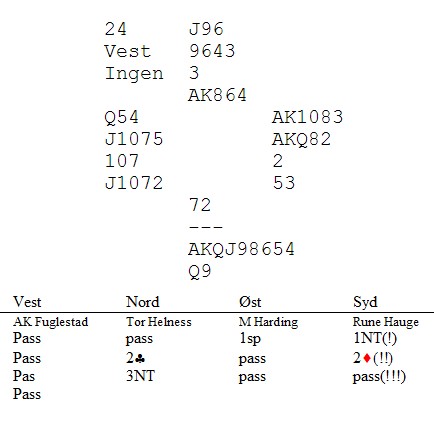 Dette meldingsforløpet er hentet ut fra virkeligheten og ikke noen Science Fiction film eller X-Files episode. Syd mangler et par honnørpoeng for å melde 1NT?