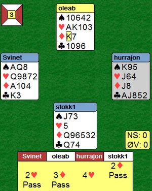 Legg merke til at jeg i teksten over bruker "sommerens Festival-parmesterskap" som navn på parturneringa under Bridgefestivalen. Vi har allerede for mange Norgesmesterskap og med innføringen av nye NM par kan vi ikke få enda et. Jeg håper UTV bestemmer seg for at parmesterskapet i Lyngdal i september, der spillere kvalifiserer gjennom kretsene, er det ordentlige NM par. Hva de skal kalle turneringene som spilles i Fredrikstad, har jeg ikke noen sterke meninger om, bare det ikke heter "NM". En enda jevere premie for Grand Prix-vinneren vil være plass i denne parfinalen, sammen med en valgfri makker.